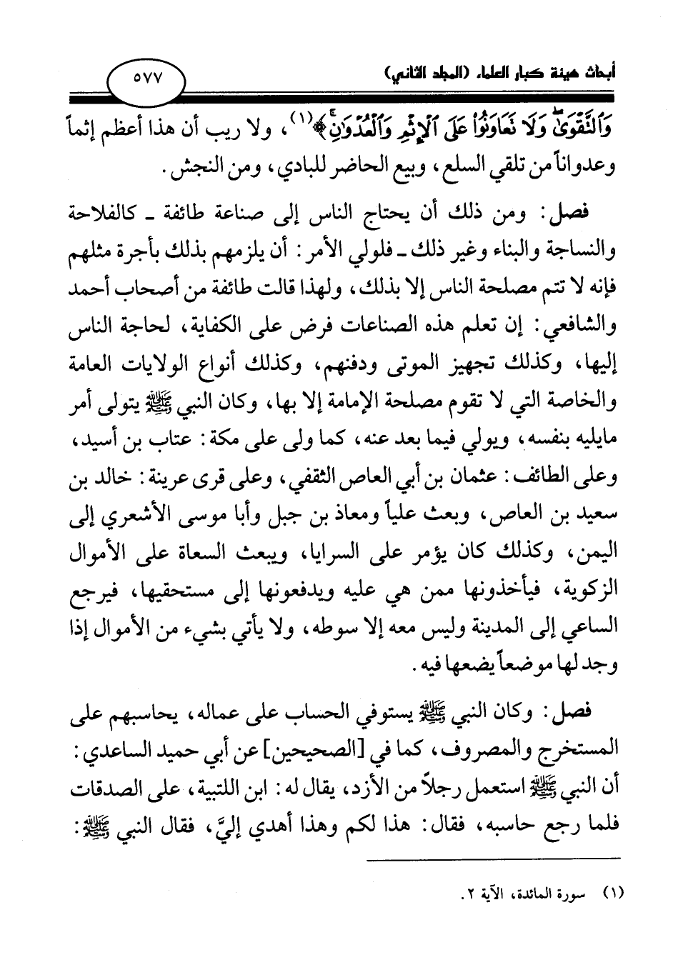 فصل: ومن ذلك أن يحتاج الناس إلى صناعة طائفة- كالفلاحة والنساجة والبناء وغير ذلك- فلولي الأمر: أن يلزمهم بذلك بأجرة مثلهم فإنه لا تتم مصلحة الناس إلا بذلك، ولهذا قالت طائفة من أصحاب أحمد والشافعي: إن تعلم هذه الصناعات فرض على الكفاية، لحاجة الناس إليها، وكذلك تجهيز الموتى ودفنهم، وكذلك أنواع الولايات العامة والخاصة التي لا تقوم مصلحة الإمامة إلا بها، وكان النبي صلى الله عليه وسلم يتولى أمر ما يليه بنفسه، ويولي فيما بعد عنه، كما ولى على مكة: عتاب بن أسيد، وعلى الطائف: عثمان بن أبي العاص الثقفي، وعلى قرى عرينة: خالد بن سعيد بن العاص، وبعث عليا ومعاذ بن جبل وأبا موسى الأشعري إلى اليمن، وكذلك كان يؤمر على السرايا، ويبعث السعاة على الأموال الزكوية، فيأخذونها ممن هي عليه ويدفعونها إلى مستحقيها، فيرجع الساعي إلى المدينة وليس معه إلا سوطه، ولا يأتي بشيء من الأموال إذا وجد لها موضعا يضعها فيه.