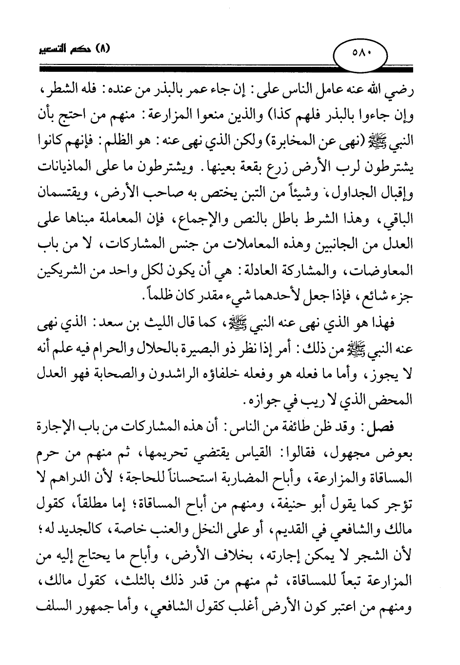فهذا هو الذي نهى عنه النبي صلى الله عليه وسلم، كما قال الليث بن سعد: الذي نهى عنه النبي صلى الله عليه وسلم من ذلك: أمر إذا نظر ذو البصيرة بالحلال والحرام فيه علم أنه لا يجوز، وأما ما فعله هو وفعله خلفاؤه الراشدون والصحابة فهو العدل المحض الذي لا ريب في جوازه.