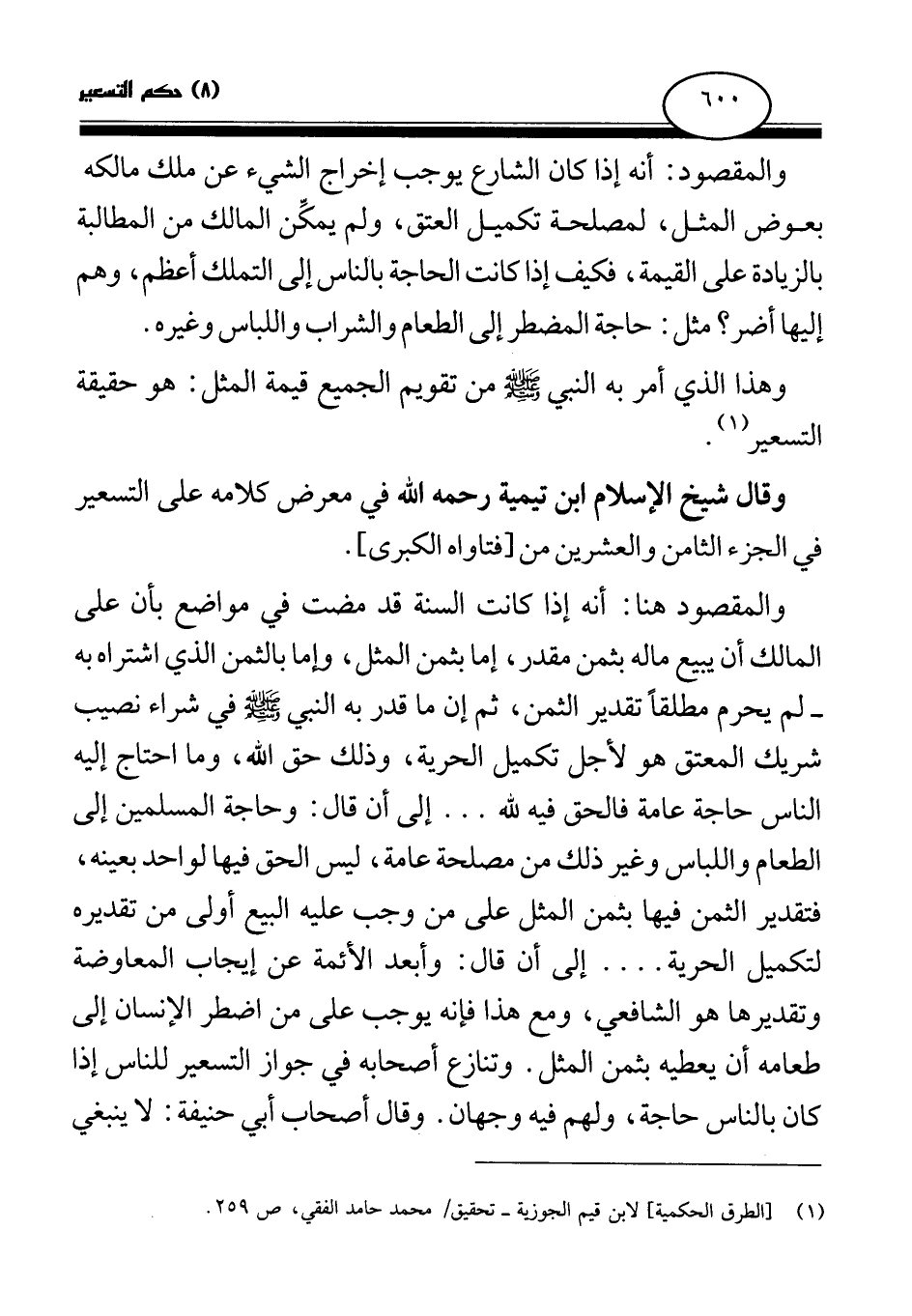 (¬1) [الطرق الحكمية] لابن قيم الجوزية- تحقيق\ محمد حامد الفقي، ص259.