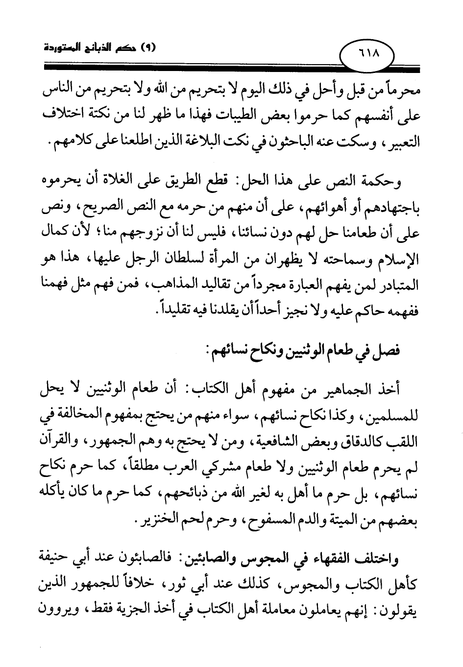 وحكمة النص على هذا الحل: قطع الطريق على الغلاة أن يحرموه باجتهادهم أو أهوائهم، على أن منهم من حرمه مع النص الصريح، ونص على أن طعامنا حل لهم دون نسائنا، فليس لنا أن نزوجهم منا؛ لأن كمال الإسلام وسماحته لا يظهران من المرأة لسلطان الرجل عليها، هذا هو المتبادر لمن يفهم العبارة مجردا من تقاليد المذاهب، فمن فهم مثل فهمنا ففهمه حاكم عليه ولا نجيز أحدا أن يقلدنا فيه تقليدا.