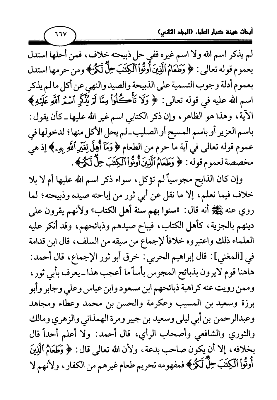 وإن كان الذابح مجوسيا لم تؤكل، سواء ذكر اسم الله عليها أم لا بلا خلاف فيما نعلم، إلا ما نقل عن أبي ثور من إباحته صيده وذبيحته؛ لما روي عنه صلى الله عليه وسلم أنه قال: «سنوا بهم سنة أهل الكتاب (¬5) » ولأنهم يقرون على دينهم بالجزية، كأهل الكتاب، فيباح صيدهم وذبائحهم، وقد أنكر عليه العلماء ذلك واعتبروه خلافا لإجماع من سبقه من السلف، قال ابن قدامة في [المغني] : قال إبراهيم الحربي: خرق أبو ثور الإجماع، قال أحمد: هاهنا قوم لا يرون بذبائح المجوس بأسا ما أعجب هذا يعرف بأبي ثور، وممن رويت عنه كراهية ذبائحهم: ابن مسعود وابن عباس وعلي وجابر وأبو برزة وسعيد بن المسيب وعكرمة والحسن بن محمد وعطاء ومجاهد وعبد الرحمن بن أبي ليلى وسعيد بن جبير ومرة الهمذاني ومالك والثوري والشافعي وأصحاب الرأي، قال أحمد: ولا أعلم أحدا قال بخلافه، إلا أن يكون صاحب بدعة، ولأن الله تعالى قال: {وَطَعَامُ الَّذِينَ أُوتُوا الْكِتَابَ حِلٌّ لَكُمْ} (¬6) فمفهومه تحريم طعام غيرهم من الكفار، ولأنهم لا