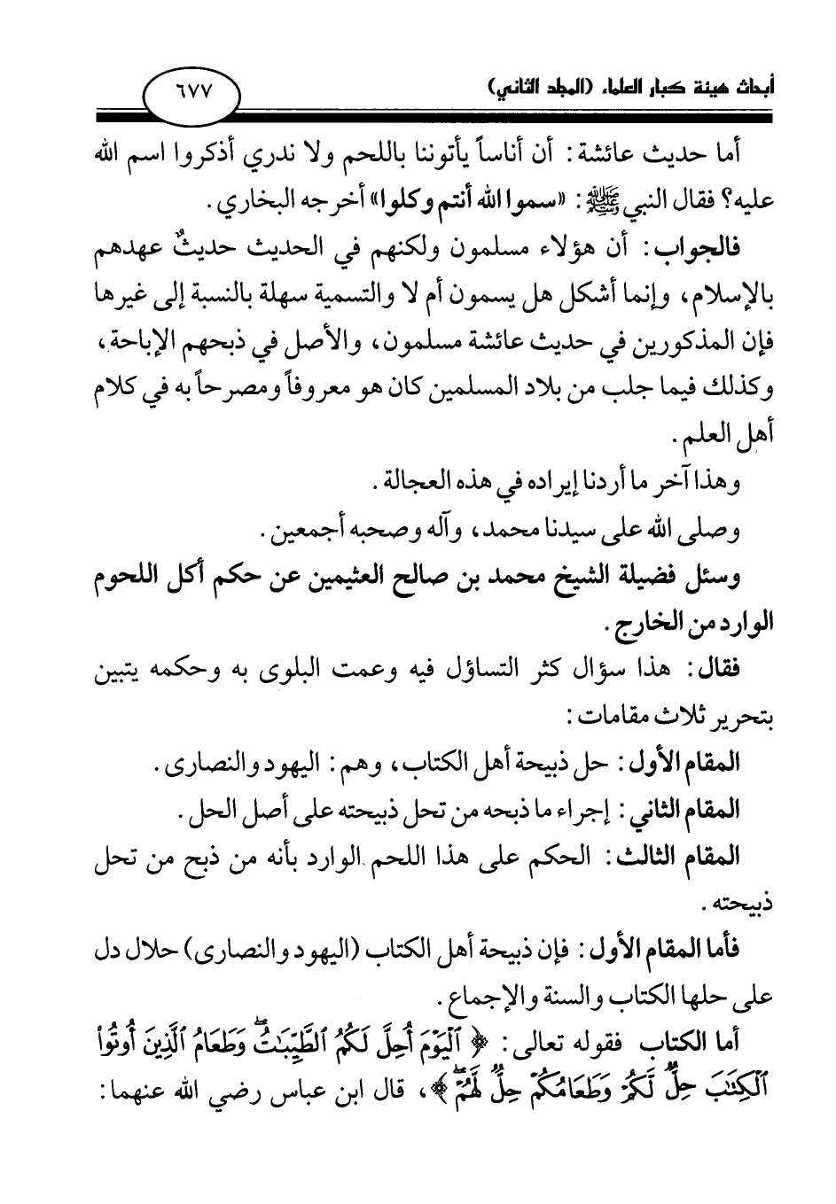 المقام الأول: حل ذبيحة أهل الكتاب، وهم: اليهود والنصارى.
