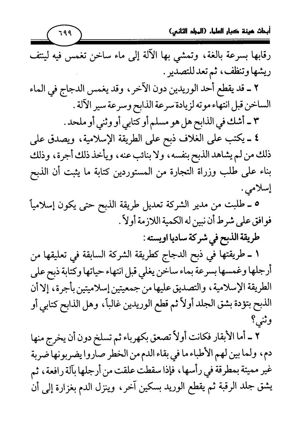 5 - طلبت من مدير الشركة تعديل طريقة الذبح حتى يكون إسلاميا فوافق على شرط أن نبين له الكمية اللازمة أولا.