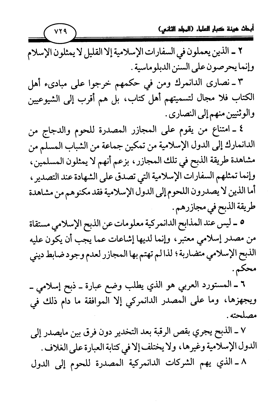 6 - المستورد العربي هو الذي يطلب وضع عبارة - ذبح إسلامي - ويجهزها، وما على المصدر الدانمركي إلا الموافقة ما دام ذلك في مصلحته.