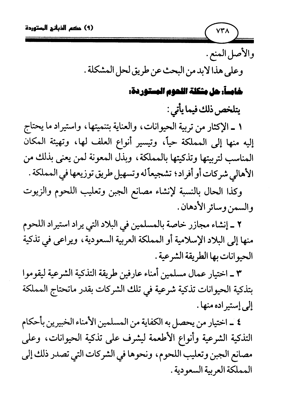 3 - اختيار عمال مسلمين أمناء عارفين طريقة التذكية الشرعية ليقوموا بتذكية الحيوانات تذكية شرعية في تلك الشركات بقدر ما تحتاج المملكة إلى استيراده منها.