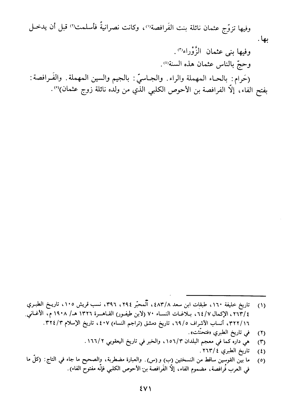 (حَرَامٌ: بِالْحَاءِ الْمُهْمَلَةِ وَالرَّاءِ. وَالْجَاسِيُّ: بِالْجِيمِ وَالسِّينِ الْمُهْمَلَةِ. وَالْفَرَافِصَةُ: بِفَتْحِ الْفَاءِ إِلَّا الْفَرَافِصَةَ بْنَ الْأَحْوَصِ الْكَلْبِيَّ الَّذِي مِنْ وَلَدِهِ نَائِلَةُ زَوْجُ عُثْمَانَ) .