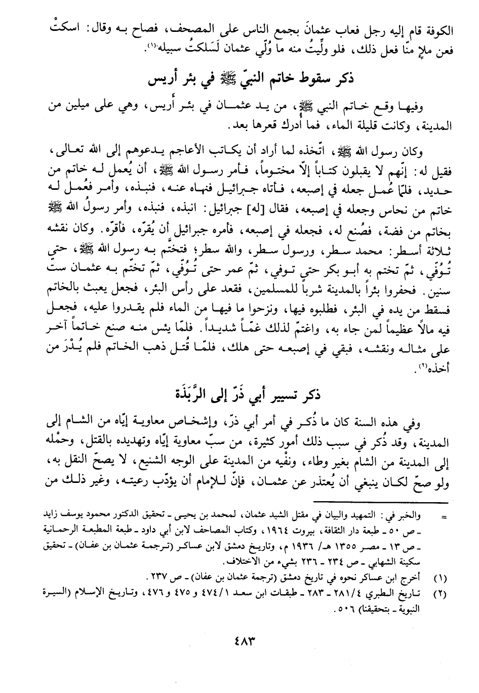 ذكر تَسْيِيرِ أَبِي ذَرٍّ إِلَى الرَّبَذَةِ