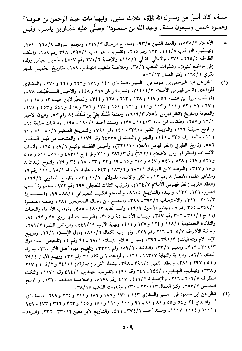 سَنَةً، كَانَ أَسَنَّ مِنْ رَسُولِ اللَّهِ - صَلَّى اللَّهُ عَلَيْهِ وَسَلَّمَ - بِثَلَاثِ سِنِينَ. وَفِيهَا مَاتَ عَبْدُ الرَّحْمَنِ بْنُ عَوْفٍ وَعُمْرُهُ خَمْسٌ وَسَبْعُونَ سَنَةً. وَعَبْدُ اللَّهِ بْنُ مَسْعُودٍ وَصَلَّى عَلَيْهِ عَمَّارُ بْنُ يَاسِرٍ، وَقِيلَ
