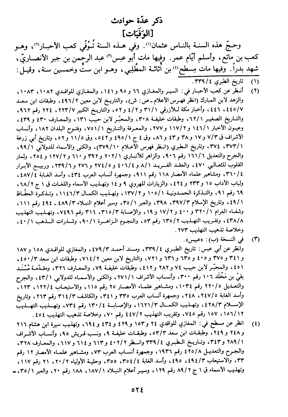 وَحَجَّ هَذِهِ السَّنَةَ بِالنَّاسِ عُثْمَانُ. وَفِي هَذِهِ السَّنَةِ تُوُفِّيَّ كَعْبُ الْأَحْبَارِ، وَهُوَ كَعْبُ بْنُ مَاتِعٍ، وَأَسْلَمَ أَيَّامَ عُمَرَ. وَفِيهَا مَاتَ أَبُو عَبْسٍ عَبْدُ الرَّحْمَنِ بْنُ جَبْرٍ الْأَنْصَارِيُّ، شَهِدَ بَدْرًا. وَفِيهَا مَاتَ مِسْطَحُ بْنُ أُثَاثَةَ الْمُطَّلِبِيُّ، وَهُوَ ابْنُ سِتٍّ وَخَمْسِينَ سَنَةً، وَقِيلَ: