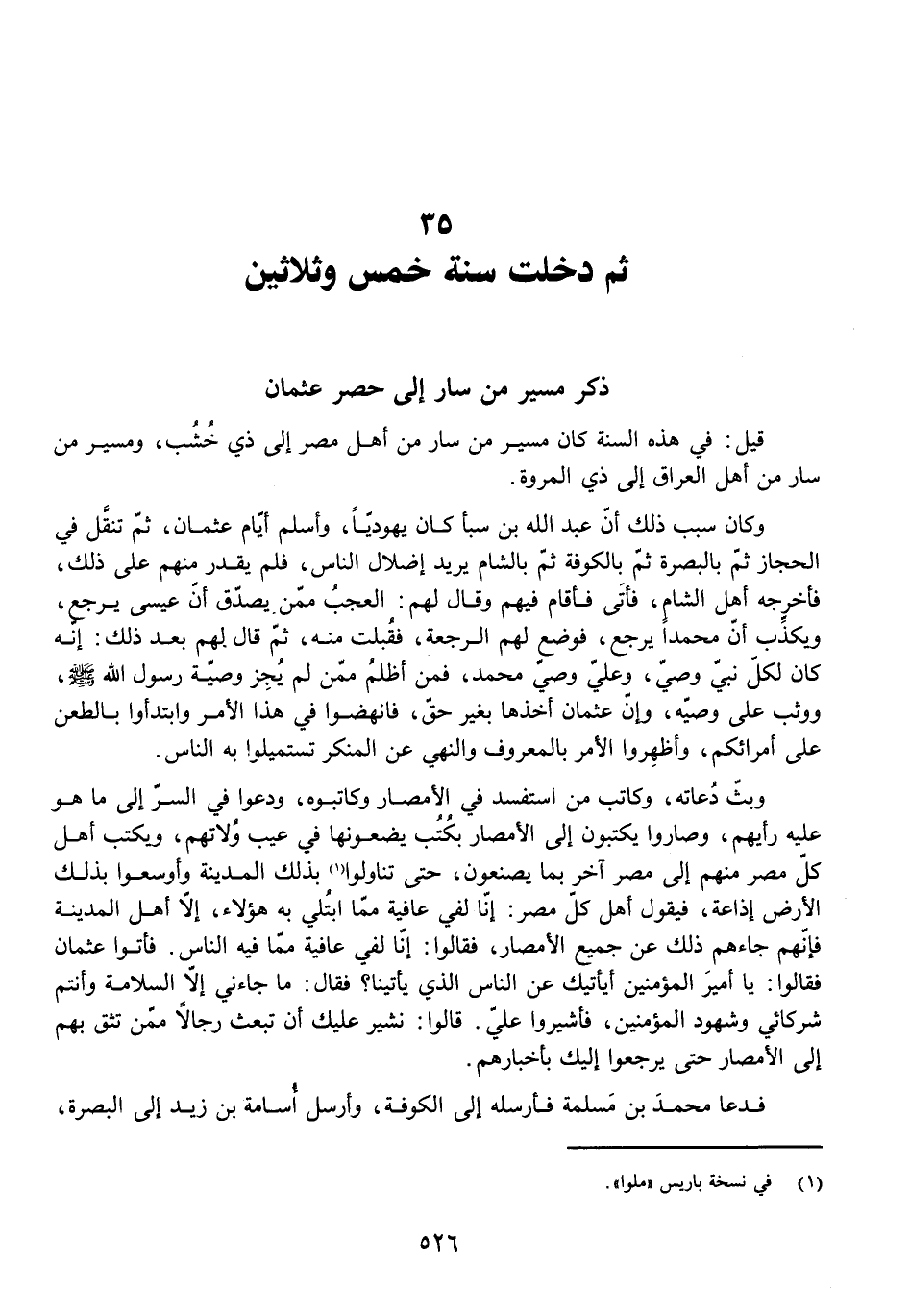 ثُمَّ دَخَلَتْ سَنَةُ خَمْسٍ وَثَلَاثِينَ