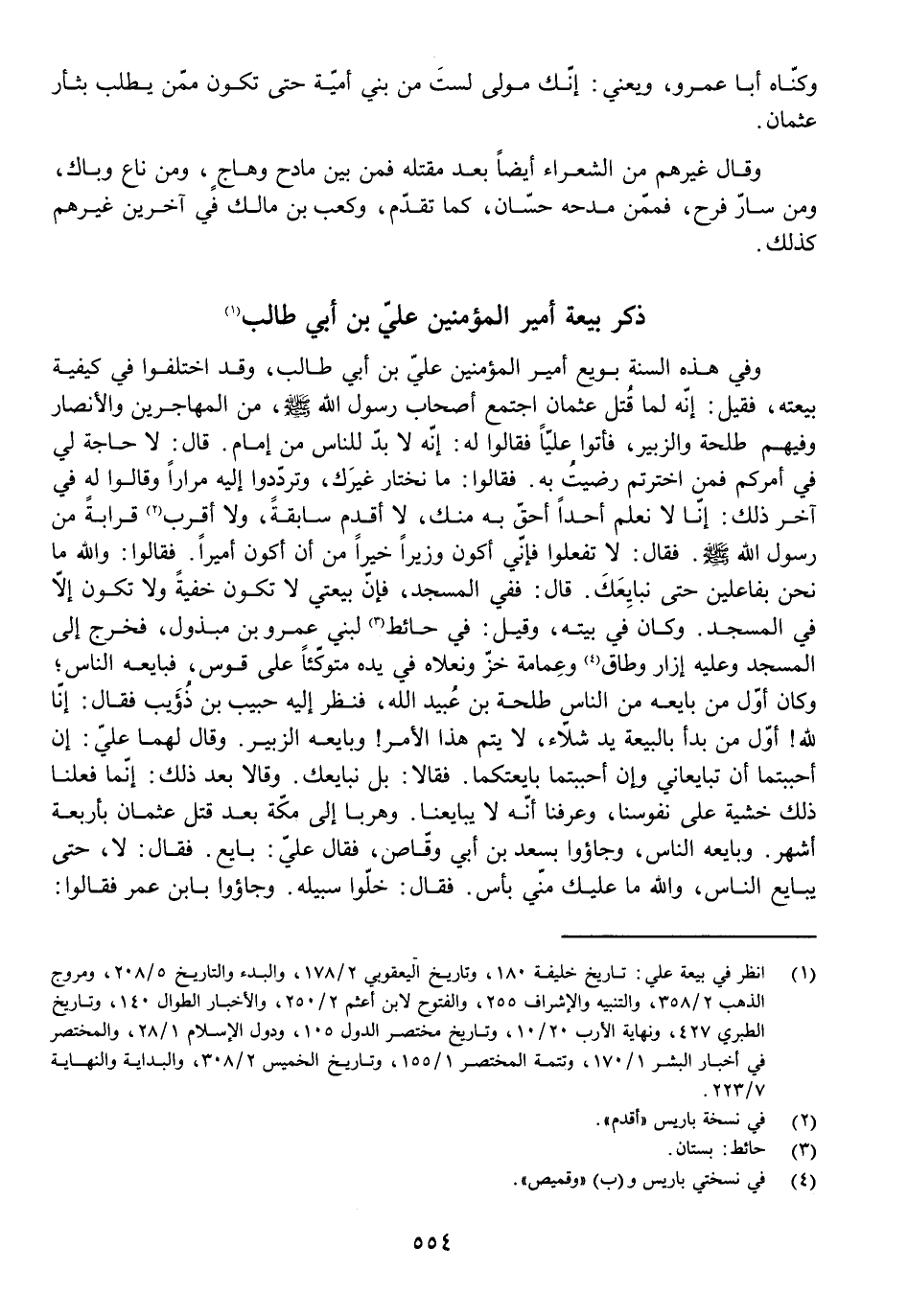 [ذكر بَيْعَةِ أَمِيرِ الْمُؤْمِنِينَ عَلِيِّ بْنِ أَبِي طَالِبٍ]