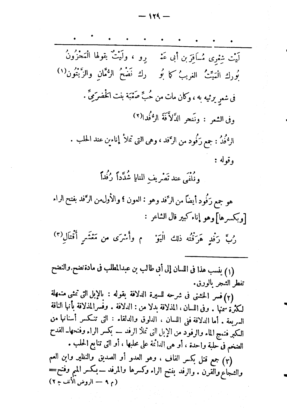 الرّفُدُ: جَمْعُ رَفُودٍ مِنْ الرّفْدِ، وَهِيَ الّتِي تَمْلَأُ إنَاءَيْنِ عِنْدَ الْحَلْبِ.