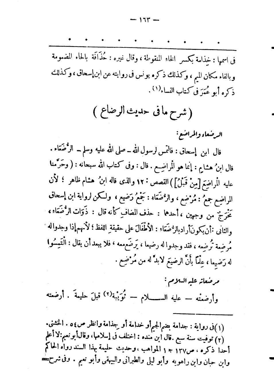 (2) توفيت سنة سبع. قال ابن منده: اختلف فى إسلامها، وقال أبو نعيم: لا أعلم أحدا ذكره، ص 137 ج 1 المواهب، وحديث حليمة بهذا السند رواه الحاكم وابن حبان وابن راهويه وأبو ليلى والطبرانى والبيهقى وأبو نعيم. وفى شرح-
