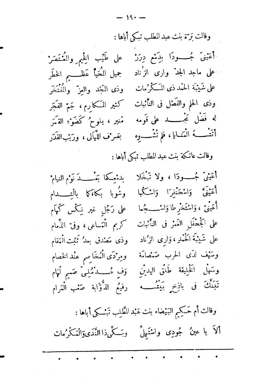 وَقَالَتْ عَاتِكَةُ بِنْتُ عَبْدِ الْمُطّلِبِ تَبْكِي أَبَاهَا:
