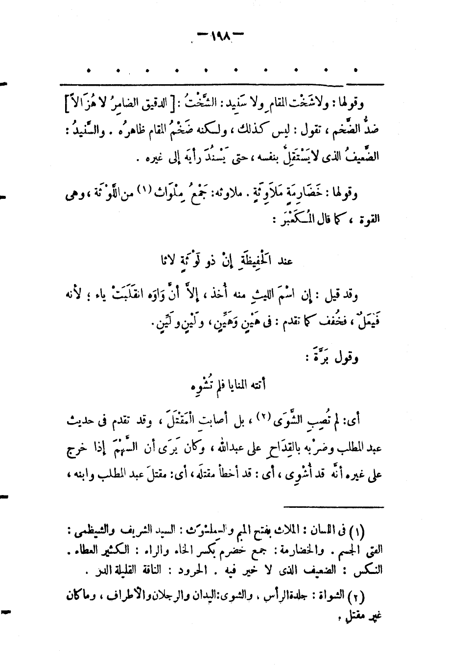 (1) فى اللسان: الملاث بفتح الميم والملوث: السيد الشريف والشيظمى: الفتى الجسم. والخضارمة: جمع خضرم بكسر الخاء والراء: الكثير العطاء. النكس: الضعيف الذى لا خير فيه. الحرود: الناقة القليلة الدر.