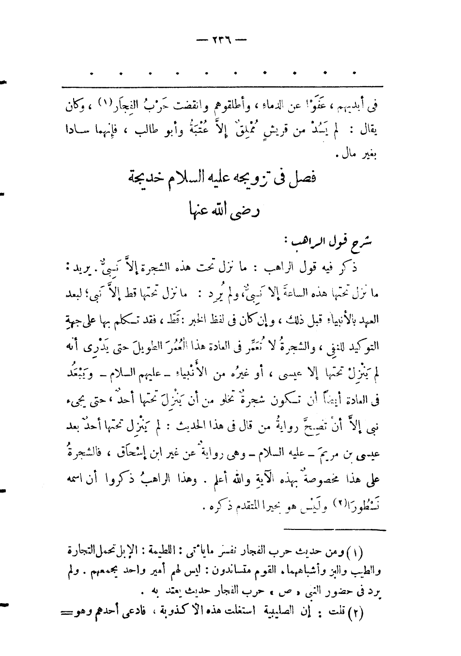 فَصْلٌ فِي تَزْوِيجِهِ عَلَيْهِ السّلَامُ خَدِيجَةَ رَضِيَ اللهُ عَنْهَا شَرْحُ قَوْلِ الرّاهِبِ: