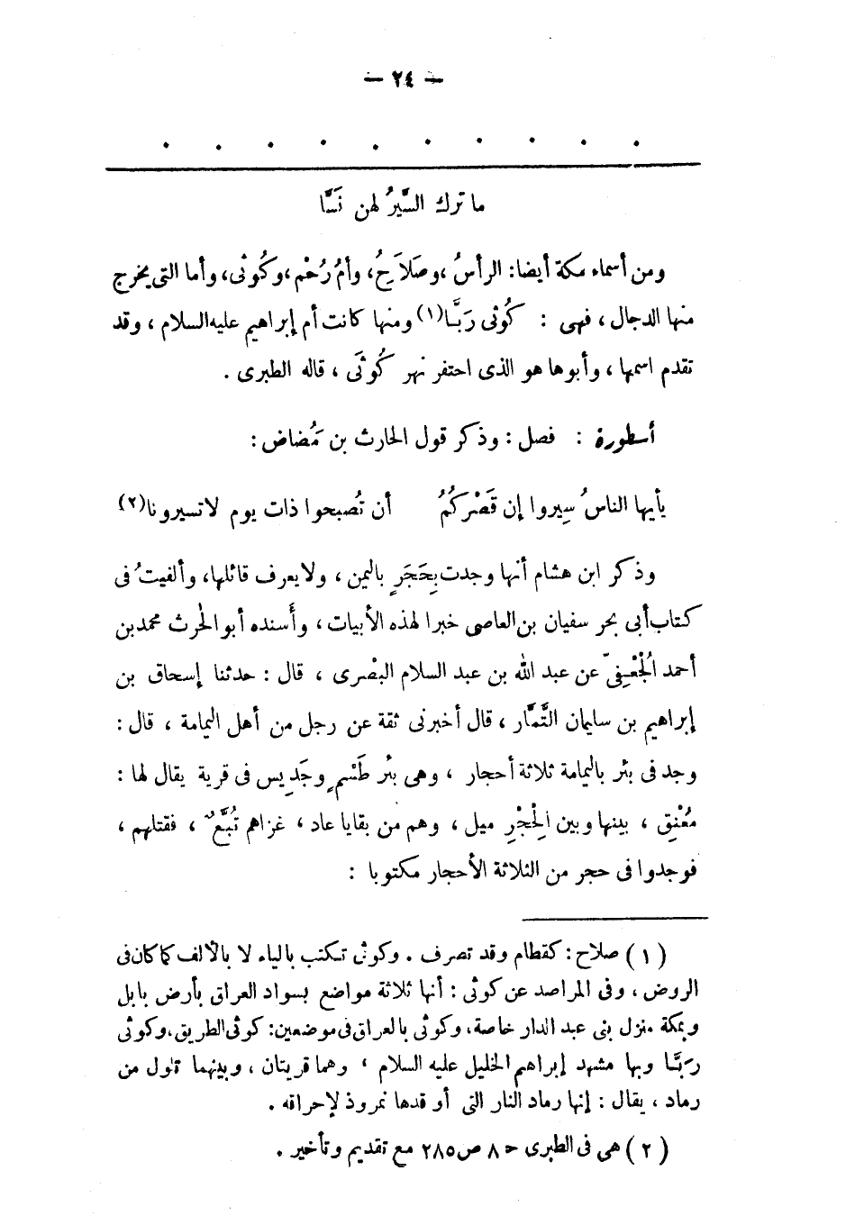 وَمِنْ أَسْمَاءِ مَكّةَ أَيْضًا: الرّأْسُ، وَصَلَاحُ، وَأُمّ رُحْمٍ، وَكُوثَى، وَأَمّا الّتِي يَخْرُجُ مِنْهَا الدّجّالُ، فَهِيَ: كُوثَى رَبّا «1» وَمِنْهَا كَانَتْ أُمّ إبْرَاهِيمَ عَلَيْهِ السّلَامُ، وَقَدْ تَقَدّمَ اسْمُهَا، وَأَبُوهَا هُوَ الّذِي احْتَفَرَ نَهْرَ كُوثَى، قَالَهُ الطّبَرِيّ.