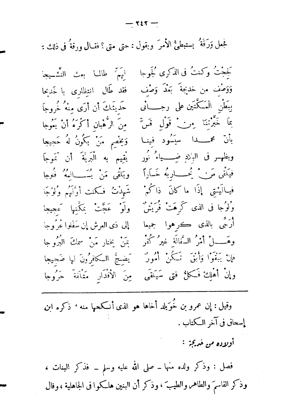 بِمَا خَبّرْتِنَا مِنْ قَوْلِ قَسّ ... مِنْ الرّهْبَانِ أَكْرَهُ أَنْ يَعُوجَا