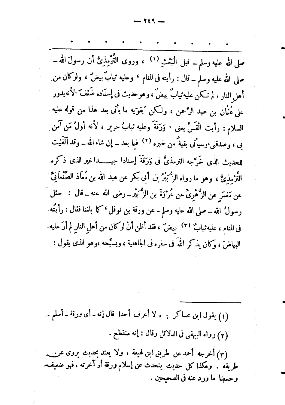(3) أخرجه أحمد عن طريق ابن لهيعة، ولا يعتد بحديث يروى عن طريقه. وهكذا كل حديث يتحدث عن إسلام ورقة أو آخرته، فهو ضعيف وحسبنا ما ورد عنه فى الصحيحين.