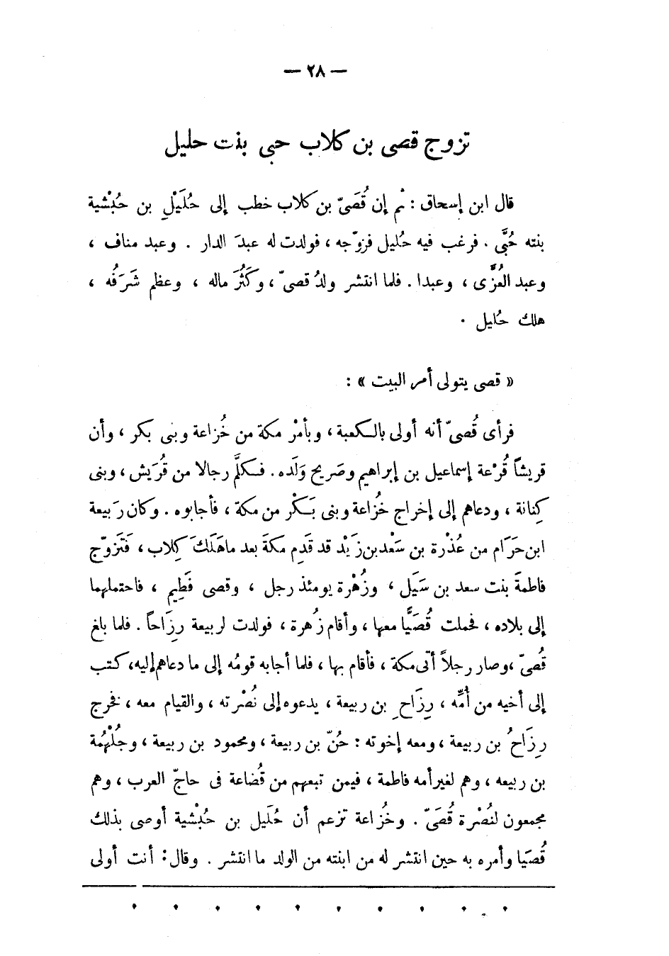 [تَزَوّجُ قُصَيّ بْنِ كِلَابٍ حُبّى بِنْتَ حُلَيْلٍ]