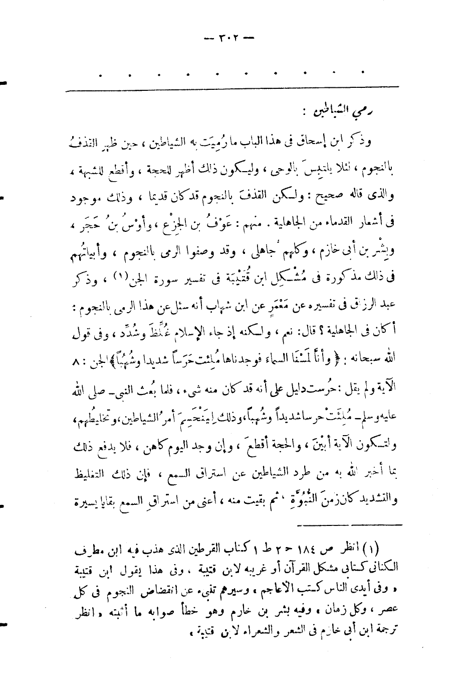 (1) انظر ص 184 ح 2 ط 1 كتاب القرطين الذى هذب فيه ابن مطرف الكنانى كتابى مشكل القرآن أو غريبه لابن قتيبة، وفى هذا يقول ابن قتيبة «وفى أيدى الناس كتب الأعاجم» وسيرهم تنبىء عن انقضاض النجوم فى كل عصر، وكل زمان» وفيه بشر بن خارم وهو خطأ صوابه ما أثبته «انظر ترجمة ابن أبى خازم فى الشعر والشعراء لابن قتيبة»