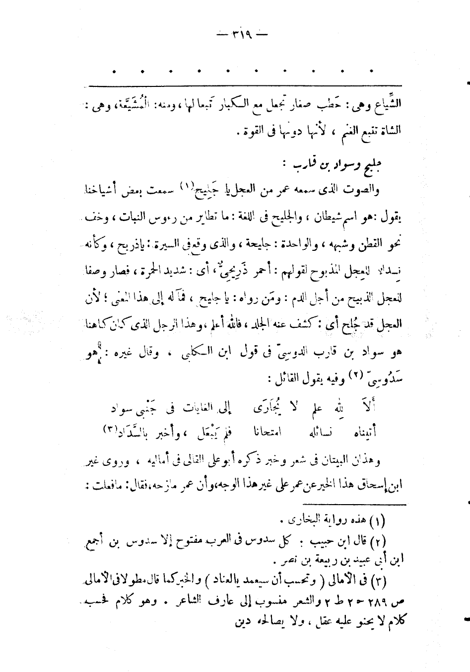 (3) فى الأمالى (وتحسب أن سيعمد يالعناد) والخبر كما قال مطولا فى الأمالى ص 289 ح 2 ط 2 والشعر منسوب إلى عارف الشاعر. وهو كلام فحسب كلام لا يحنو عليه عقل، ولا يصالحه دين