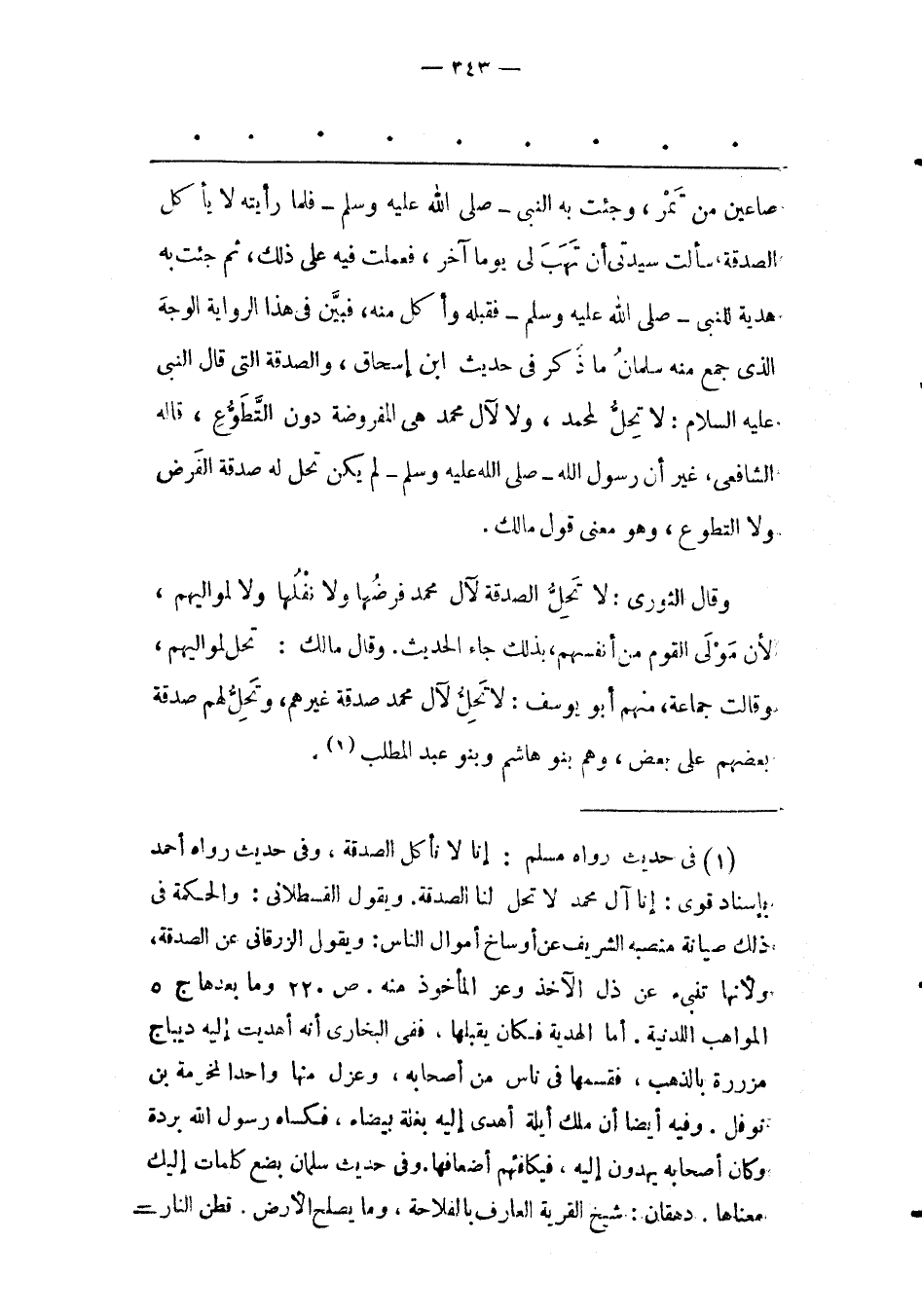 (1) فى حديث رواه مسلم: إنا لا نأكل الصدقة، وفى حديث رواه أحمد بإسناد قوى: إنا آل محمد لا تحل لنا الصدقة. ويقول الفسطلانى: والحكمة فى ذلك صيانة منصبه الشريف عن أوساخ أموال الناس: ويقول الزرقانى عن الصدقة، ولأنها تنبىء عن ذل الاخذ وعز المأخوذ منه. ص 220 وما بعدها ج 5 المواهب اللدنية. أما الهدية فكان يقبلها، ففى البخارى أنه أهديت إليه ديباج مزررة بالذهب، فقسمها فى ناس من أصحابه، وعزل منها واحدا لمخرمة بن نوفل. وفيه أيضا أن ملك أيلة أهدى إليه بغلة بيضاء، فكساه رسول الله بردة وكان أصحابه يهدون إليه، فيكافئهم أضعافها. وفى حديث سلمان بضع كلمات إليك معناها. دهقان: شيخ القرية العارف بالفلاحة، وما يصلح الأرض. قطن النار-