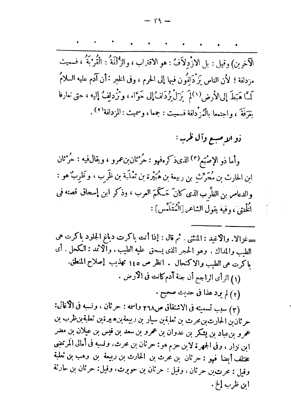 وَأَمّا ذُو الْإِصْبَعِ «3» الّذِي ذَكَرَهُ فَهُوَ: حُرْثَانُ بْنُ عَمْرٍو، وَيُقَالُ فِيهِ: حرثان ابن الْحَارِثِ بْنِ مُحَرّثِ بْنِ رَبِيعَةَ بْنِ هُبَيْرَةَ بن ثعلبة بن ظرب، وظرب هو: