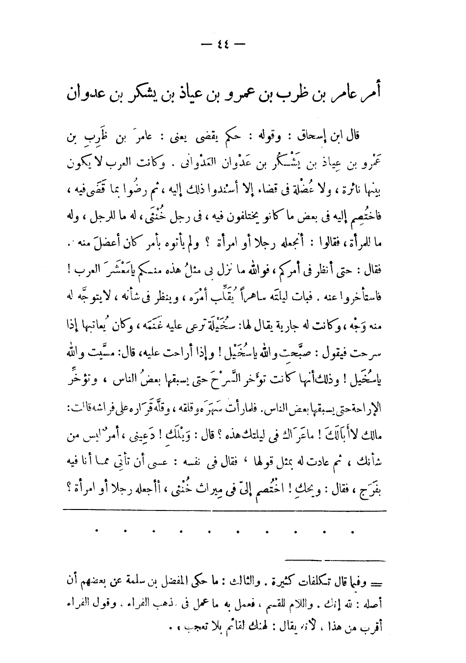 [أَمْرُ عَامِرِ بْنِ ظَرِبِ بْنِ عَمْرِو بْنِ عِيَاذِ بْنِ يَشْكُرَ بْنِ عَدْوَانَ]