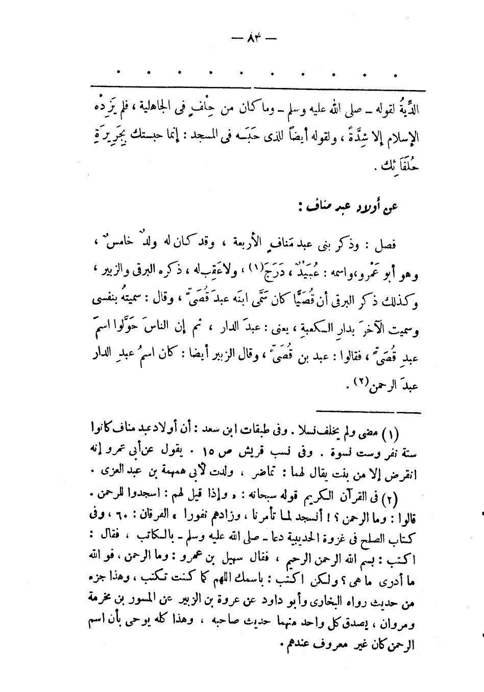 عَنْ أَوْلَادِ عَبْدِ مَنَافٍ: