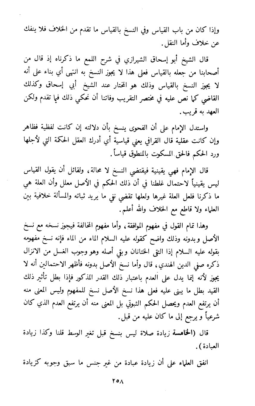 قال الشيخ أبو اسحاق الشيرازي في شرح اللمع ما ذكرناه إذ قال من أصحابنا من جعله بالقياس فعلى هذا لا يجوز النسخ به انتهى أي بناء على أنه لا يجوز النسخ بالقياس وذلك هو المختار عند الشيخ أبي اسحاق وكذلك القاضي كما نص عليه في مختصر التقريب وفاتنا ان نحكي ذلك فيما تقدم ولكن العهد به قريب.
