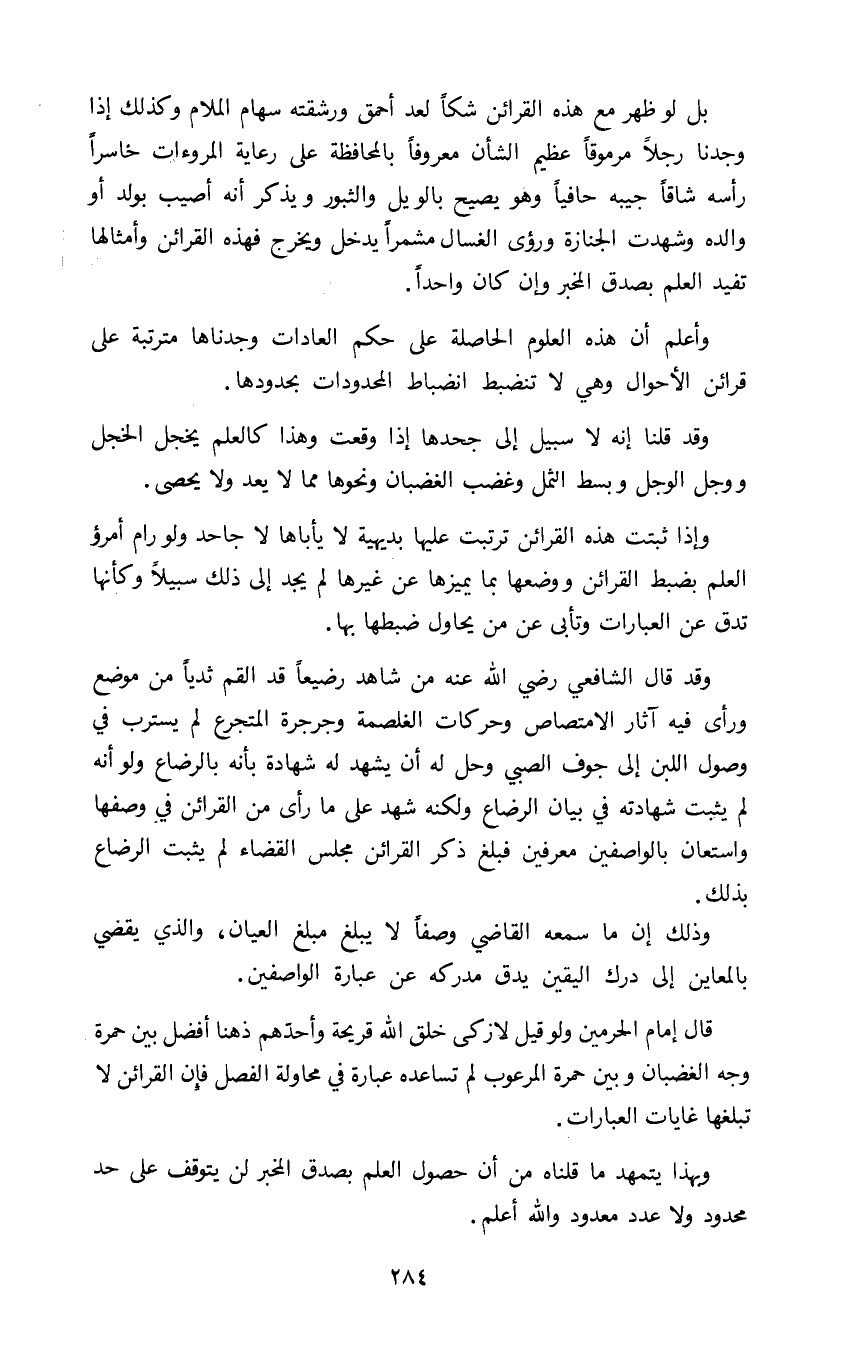 واذا ثبتت هذه القرائن ترتبت عليها بديهية لا يأباها لا جاحد ولو رام امرؤ العلم بضبط القرائن ووضعها بما يميزها عن غيرها لم يجد الى ذلك سبيلا وكأنها تدق عن العبارات وتأبى عن من يحاول ضبطها بها.