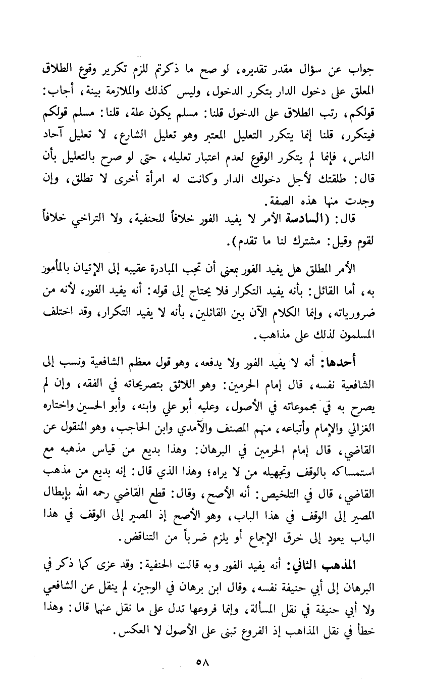 المسألة السادسة: الأمر الطلق هل يفيد الفور؟