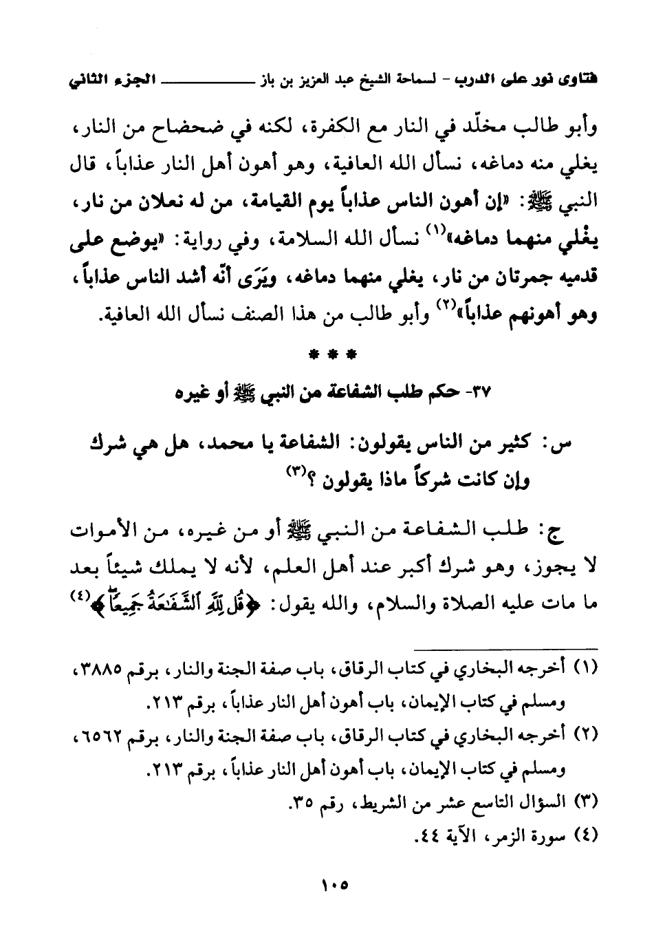 37 - حكم طلب الشفاعة من النبي - صلى الله عليه وسلم - أو غيره