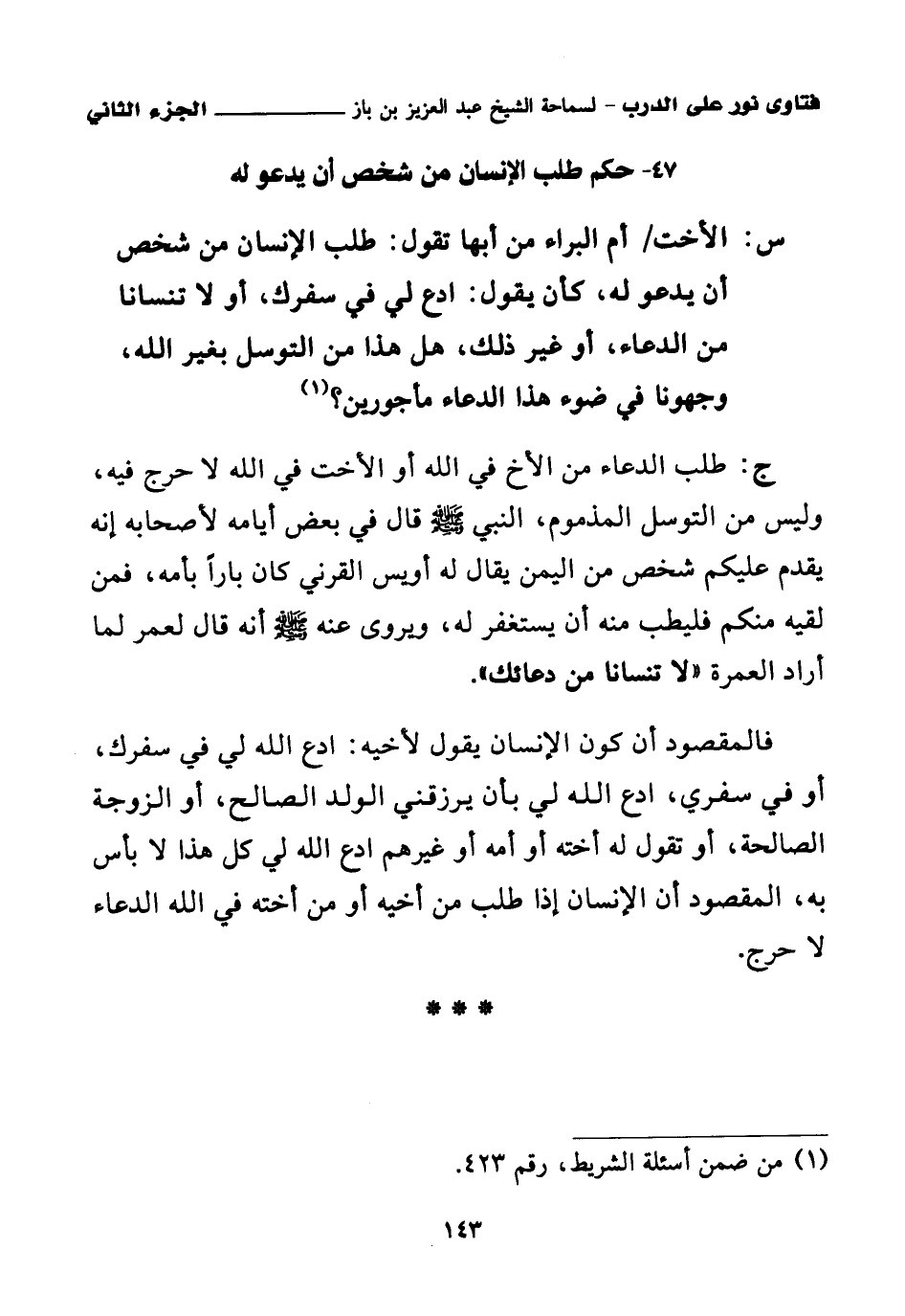 47 - حكم طلب الإنسان من شخص أن يدعو له