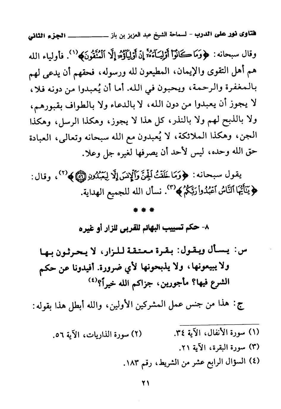8 - حكم تسييب البهائم للقربى للزار أو غيره