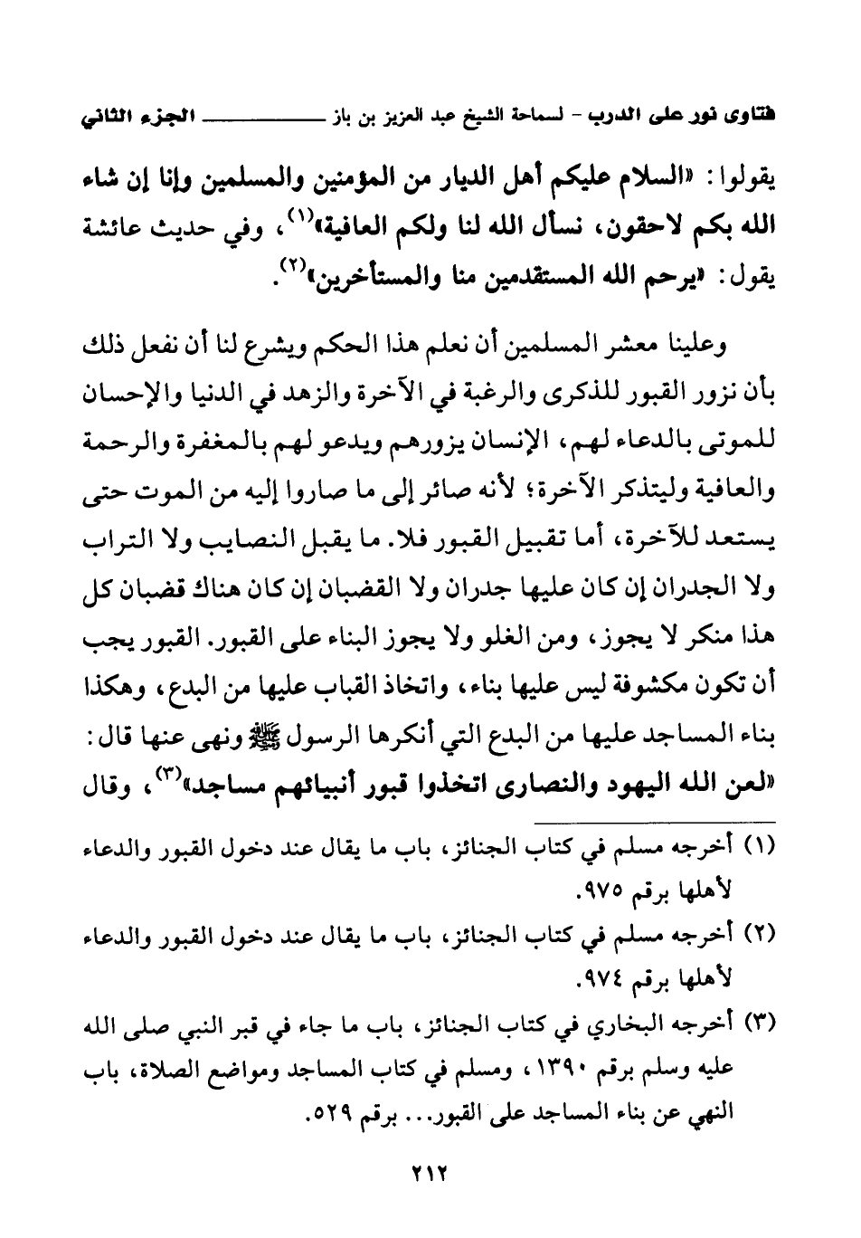(¬2) أخرجه مسلم في كتاب الجنائز، باب ما يقال عند دخول القبور والدعاء لأهلها برقم 974.