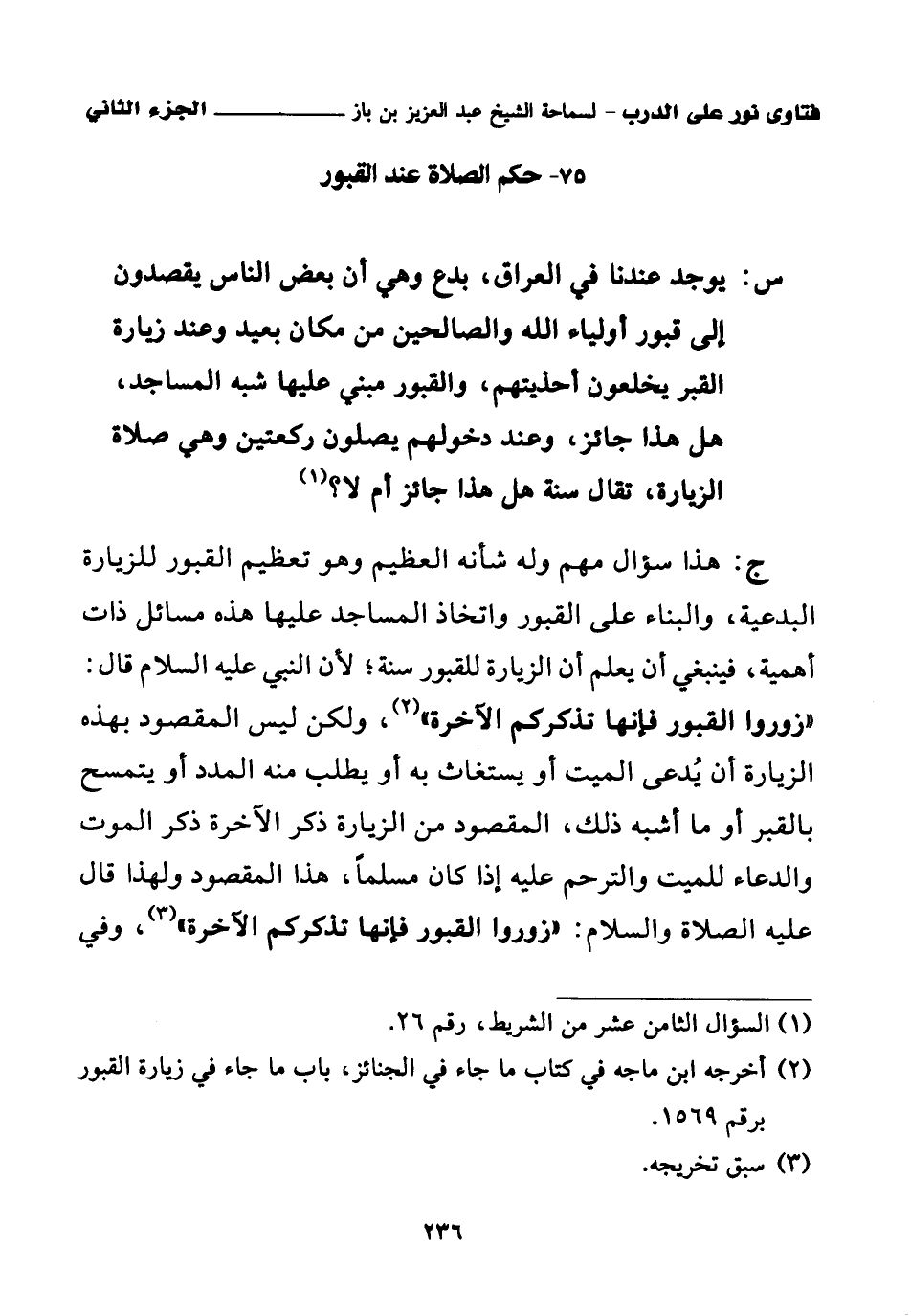 75 - حكم الصلاة عند القبور