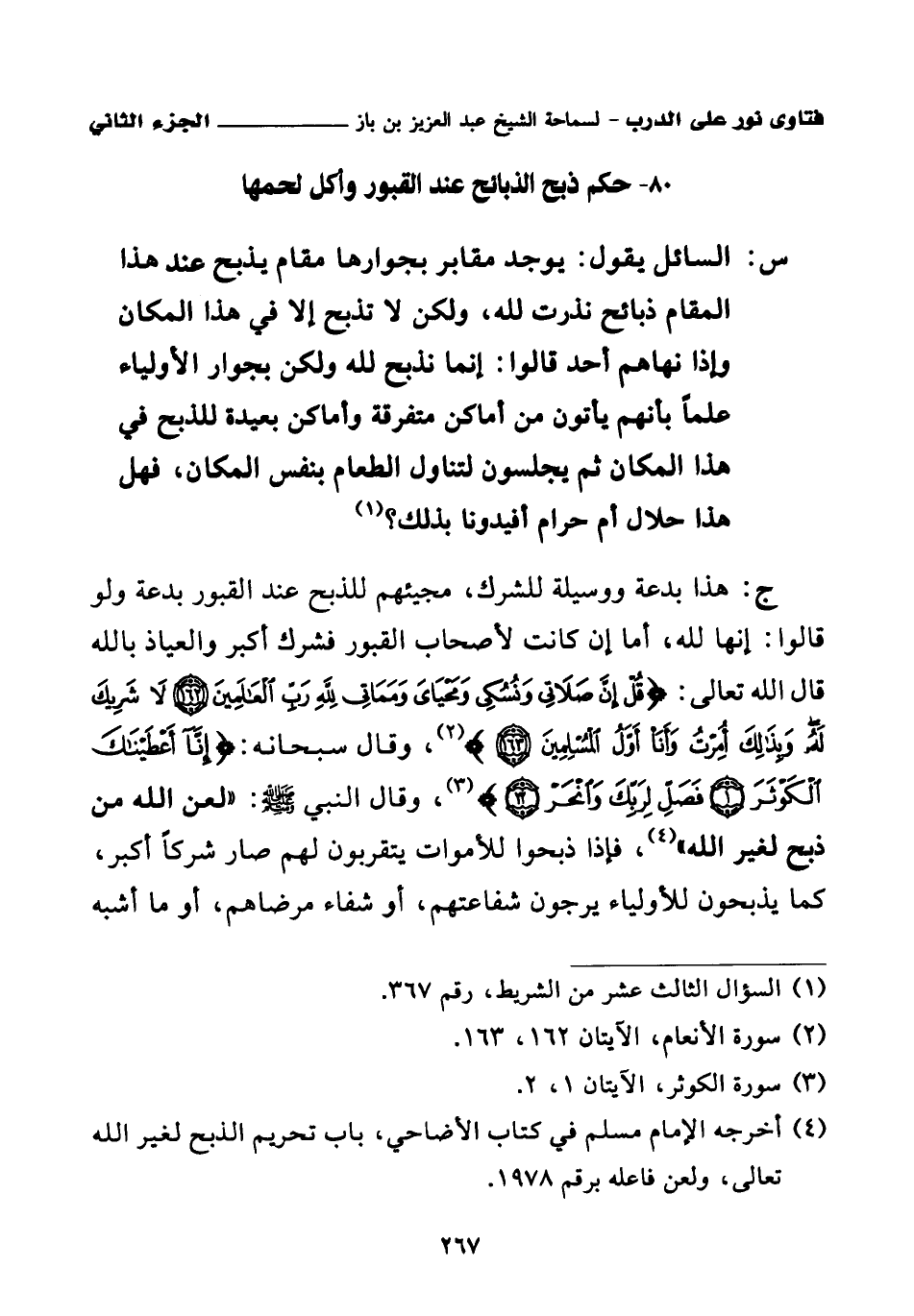 80 - حكم ذبح الذبائح عند القبور وأكل لحمها