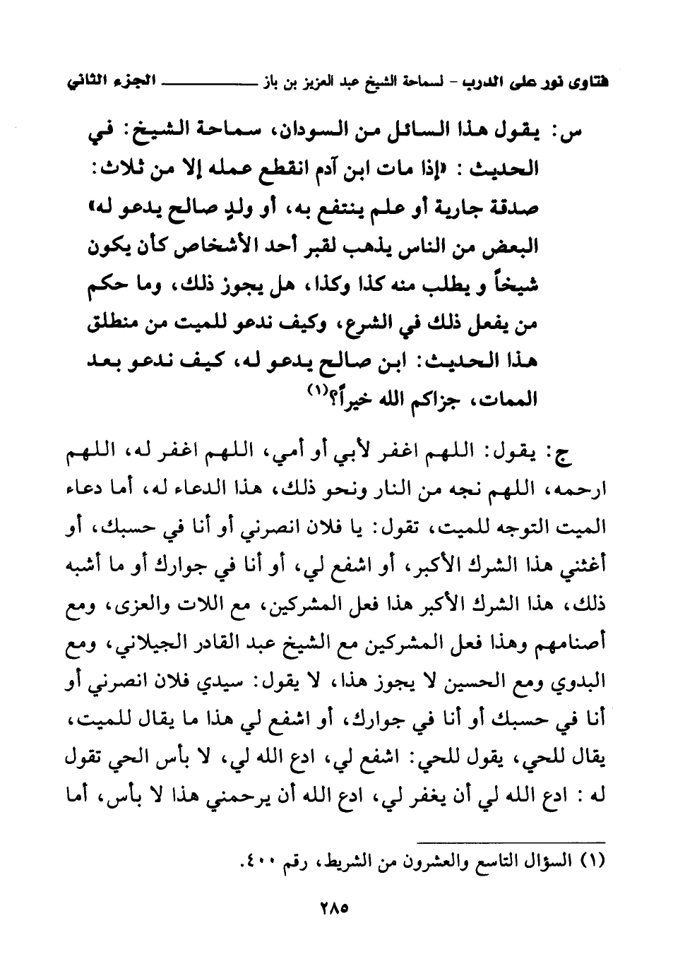 كتاب فتاوى نور على الدرب لابن باز بعناية الشويعر (اسم الجزء: 2)