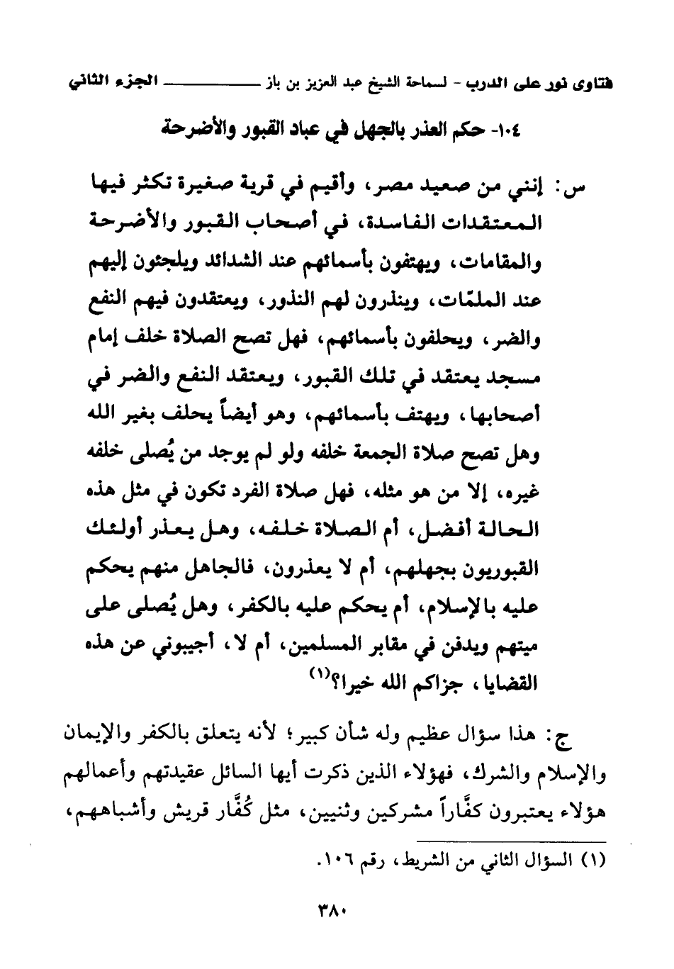 104 - حكم العذر بالجهل في عباد القبور والأضرحة