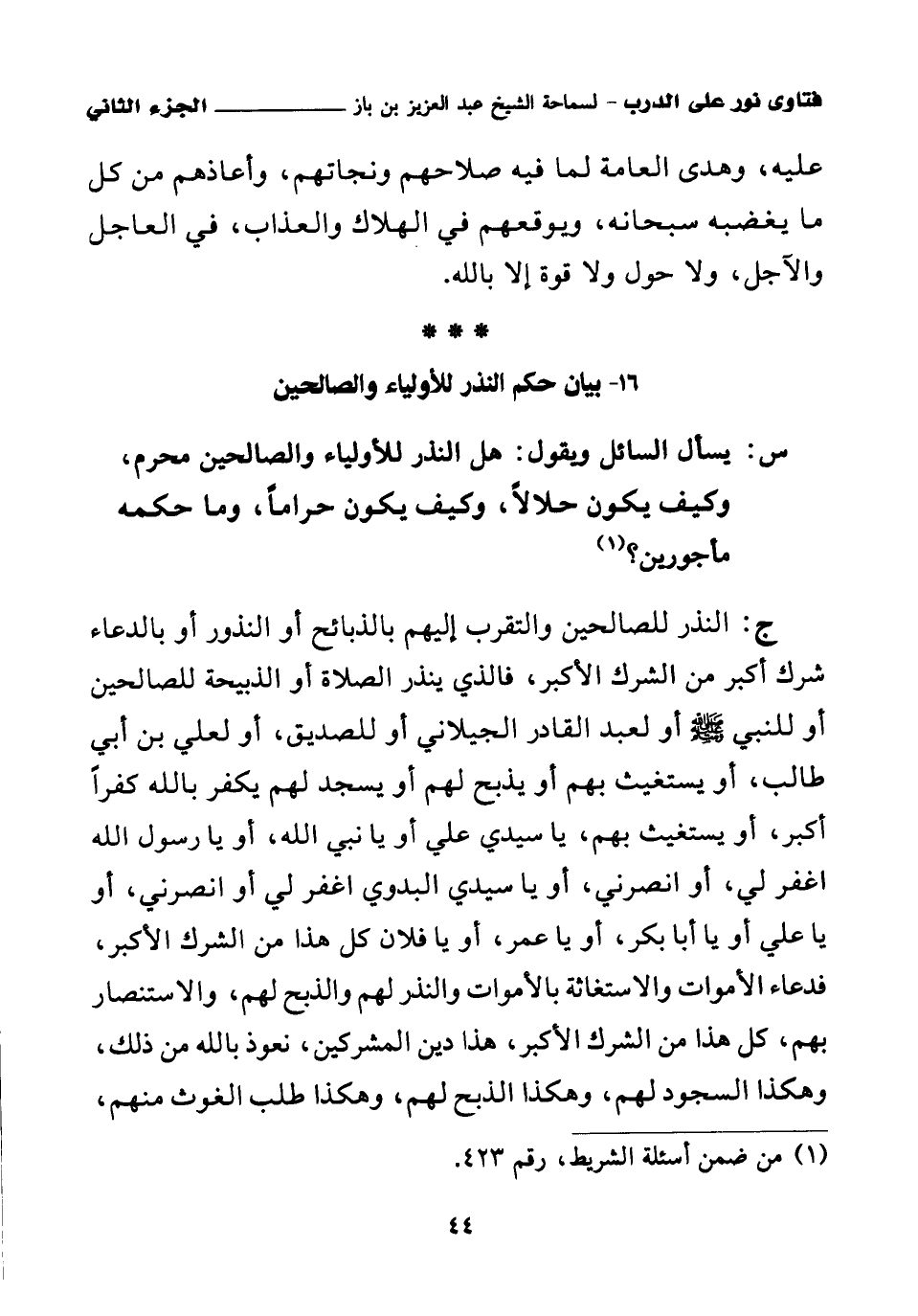كتاب فتاوى نور على الدرب لابن باز بعناية الشويعر (اسم الجزء: 2)