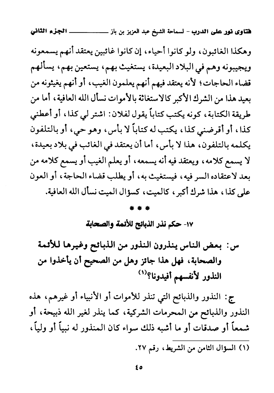 كتاب فتاوى نور على الدرب لابن باز بعناية الشويعر (اسم الجزء: 2)