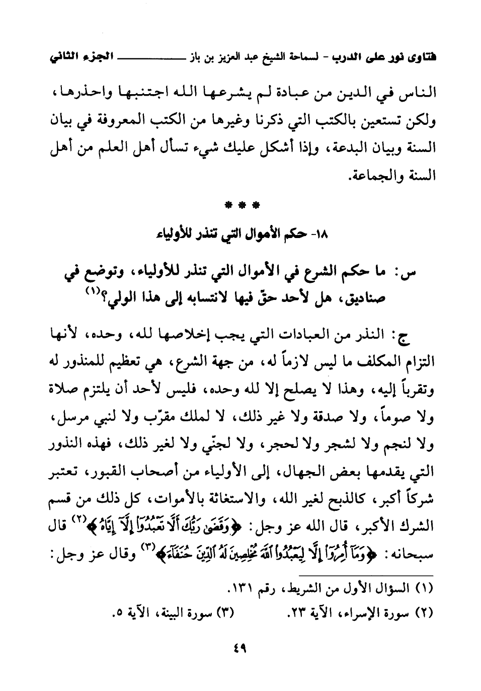 كتاب فتاوى نور على الدرب لابن باز بعناية الشويعر (اسم الجزء: 2)