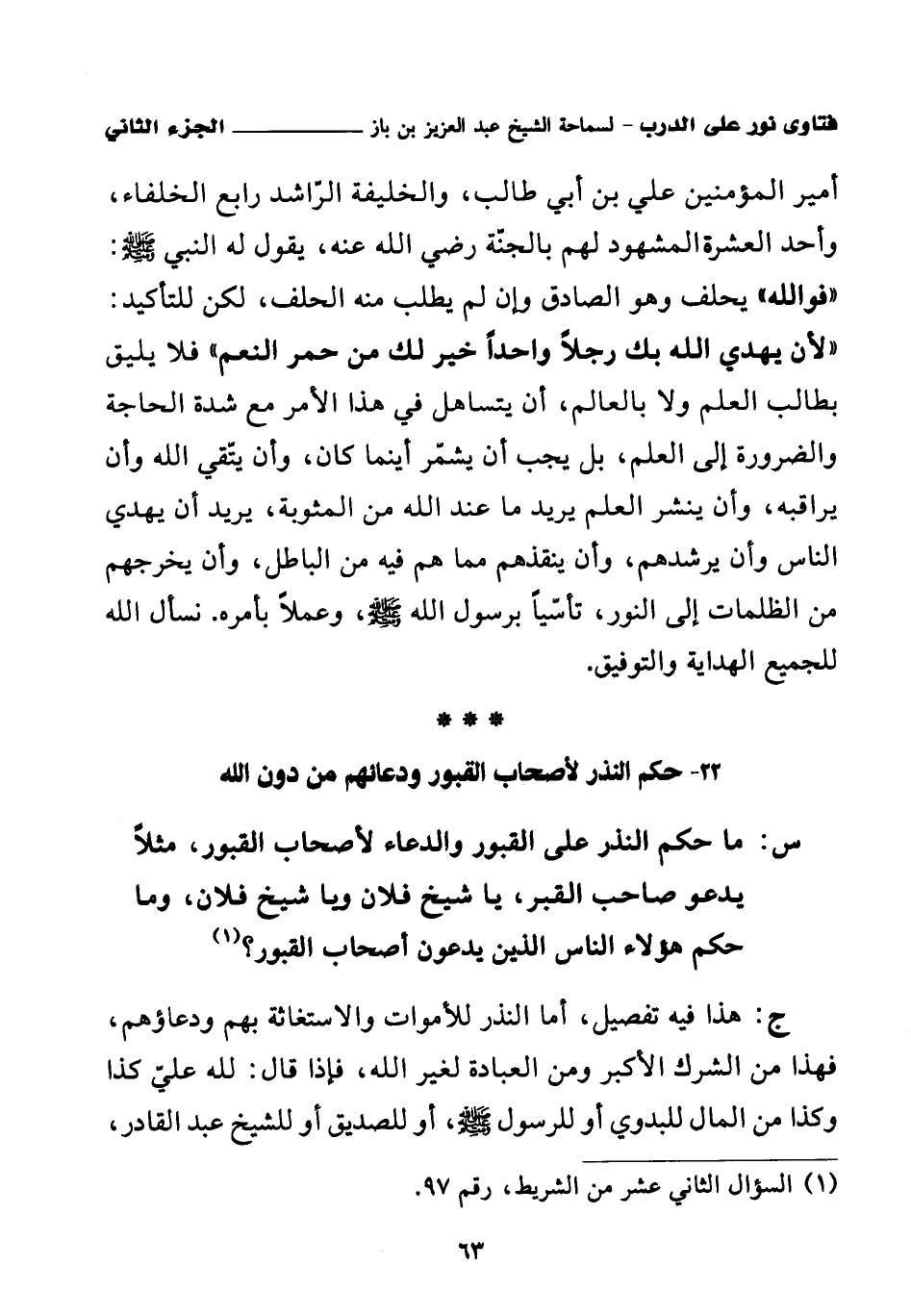 22 - حكم النذر لأصحاب القبور ودعائهم من دون الله