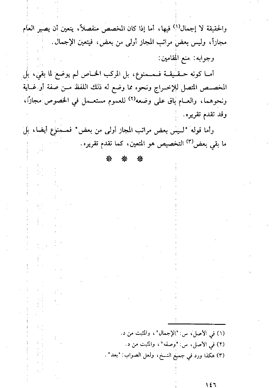 وأما قوله "ليس بعض مراتب المجاز أولى من بعض" فممنوع أيضًا، بل ما بقي بعض التخصيص هو المتعين، كما تقدم تقريره.