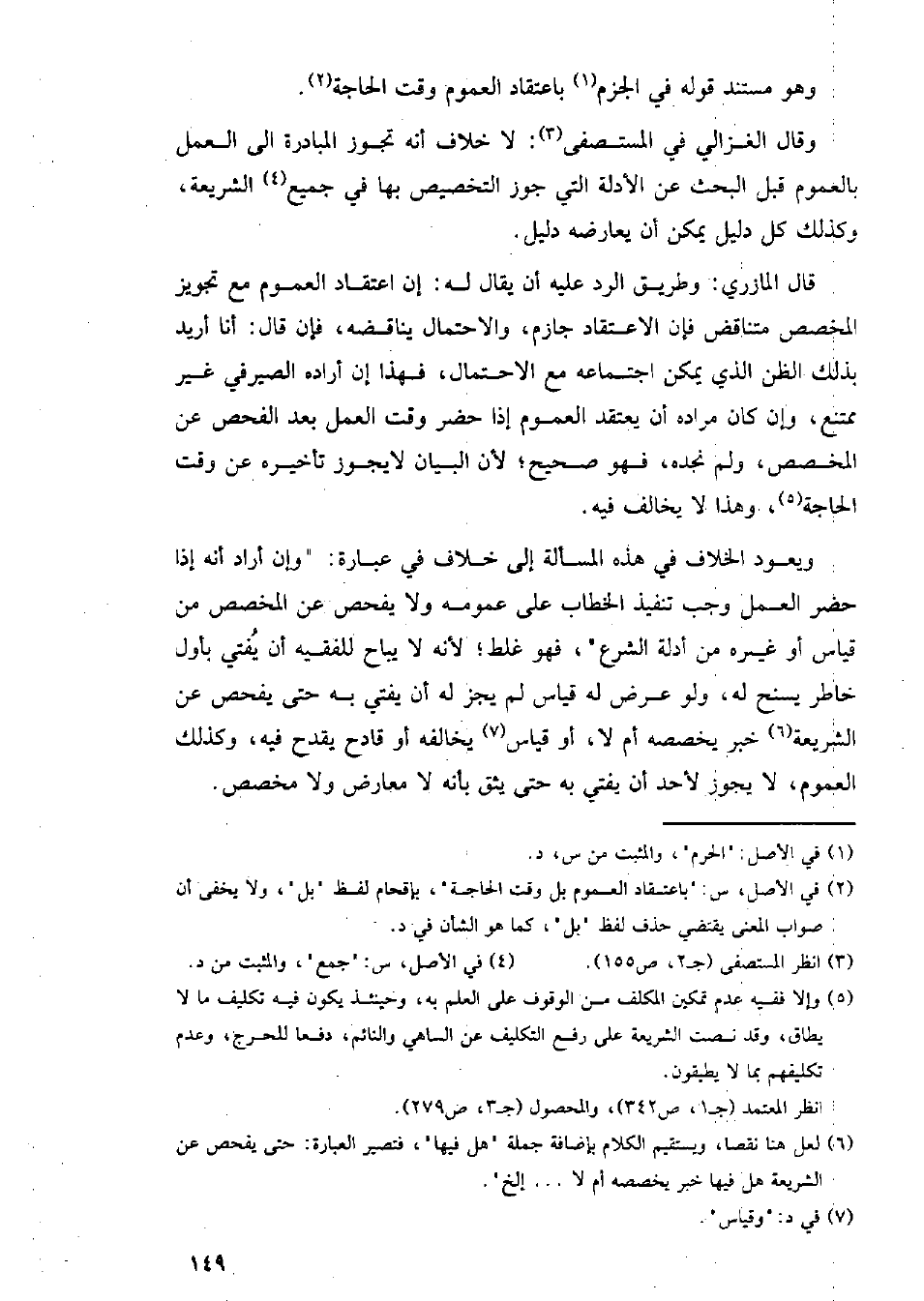 وقال الغزالي ف المستصفى: لا خلاف أنه تجوز المبادرة إلى العمل بالعموم قبل البحث عن الأدلة التي جوز التخصيص بها في جميع الشريعة، وكذلك كل دليل يمكن أن يعارضه دليل.