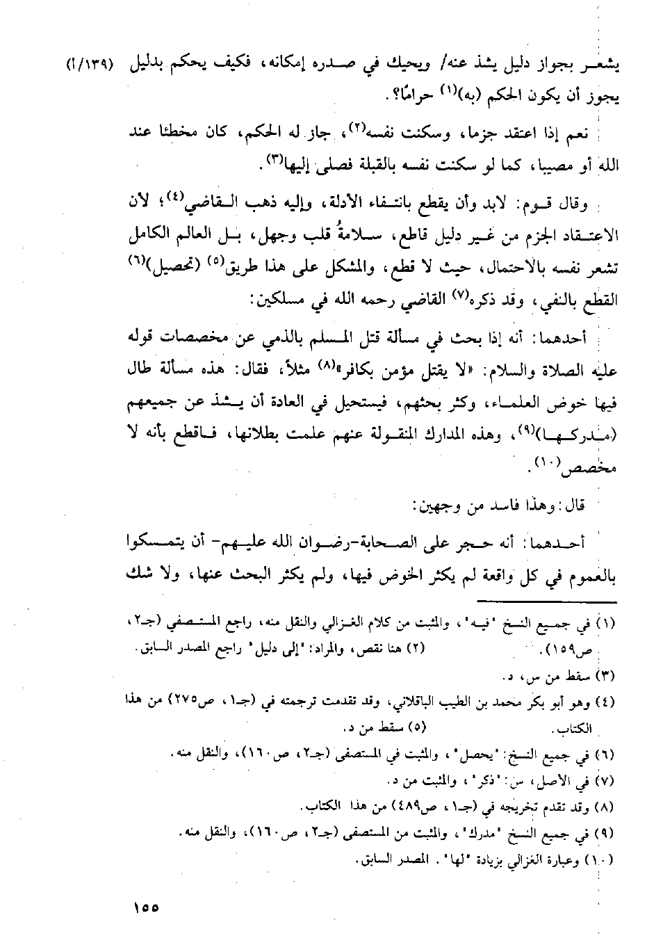 يشعر بجواز دليل يشذ عنه/ ويحيك في صدره إمكانه، فكيف يحم بدليل يجوز أن يكون الحكم (به) حراما؟