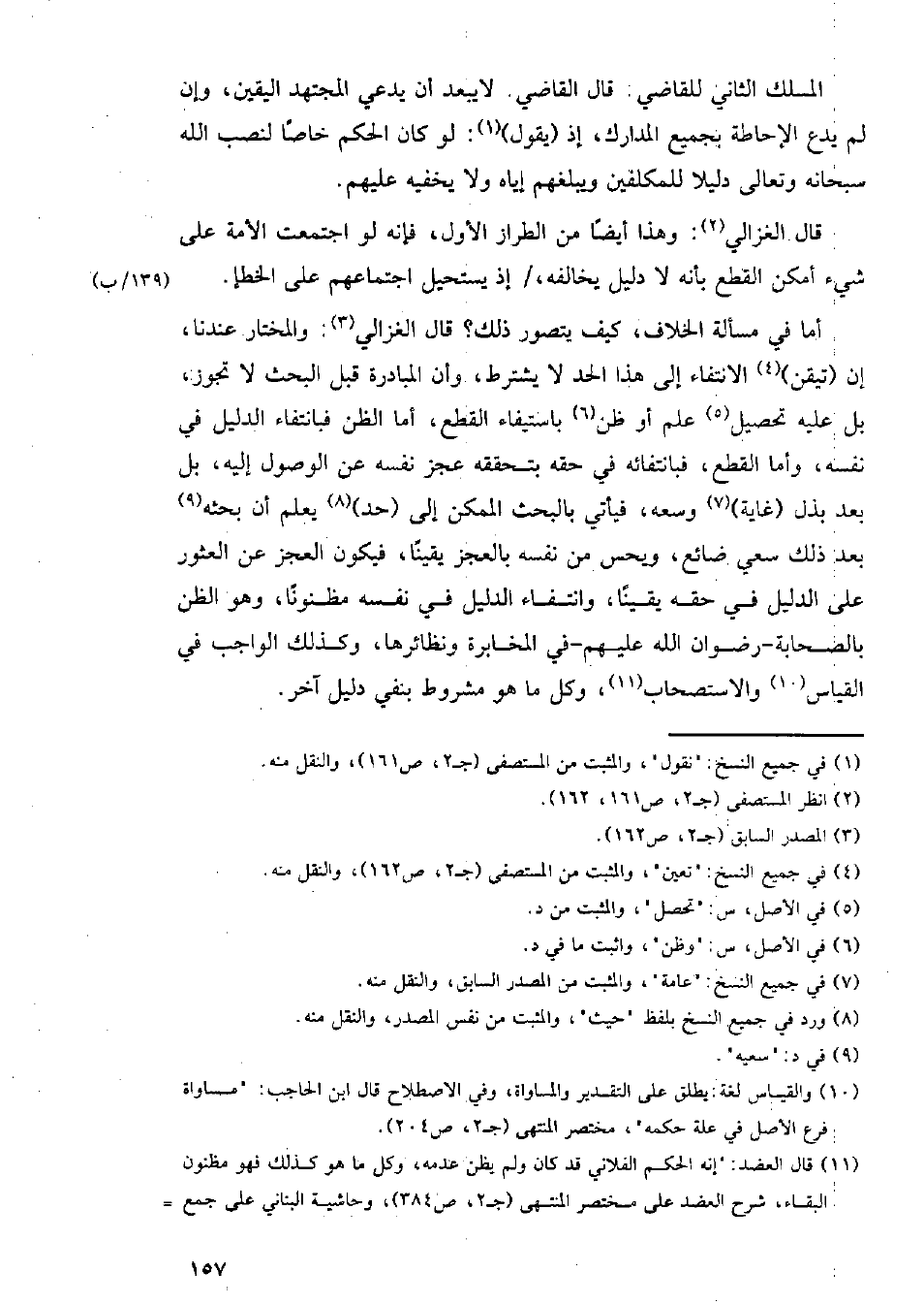 قال الغزالي: وهذا أيضا من الطراز الأول، فإنه لو اجتمعت الأمة على شيء أمكن القطع بأنه لا دليل يخالفه، إذ يستحيل اجتماعهم على الخطأ. (١٣٩/ ب)
