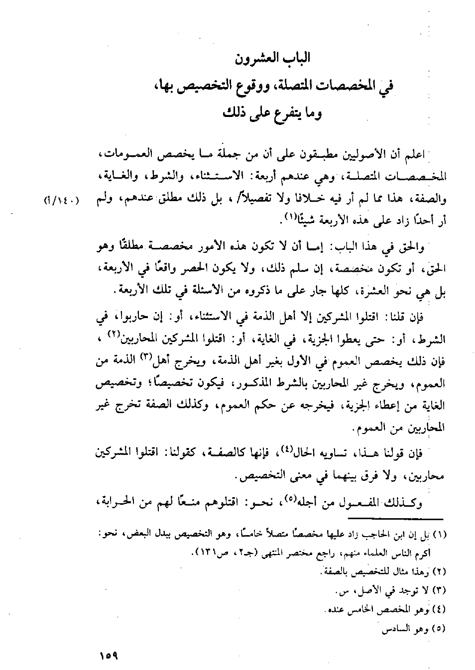 الباب العشرون في المخصصات المتصلة، ووقوع التخصيص بها، وما يتفرع عن ذلك